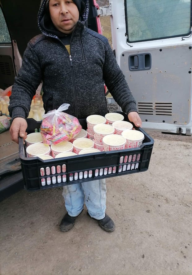 De maaltijden worden 3x per week in containers afgeleverd bij de betreffende gezinnen.